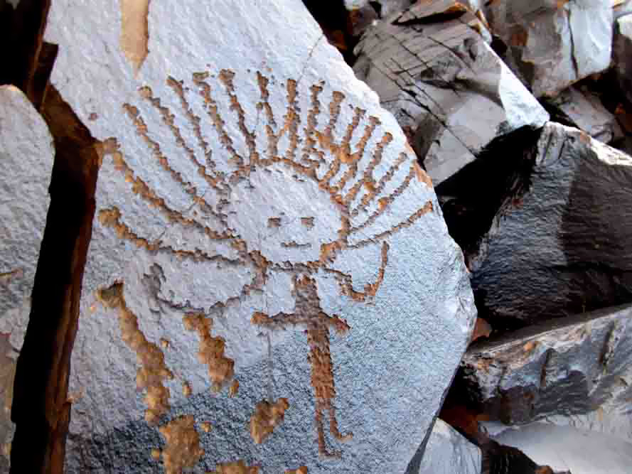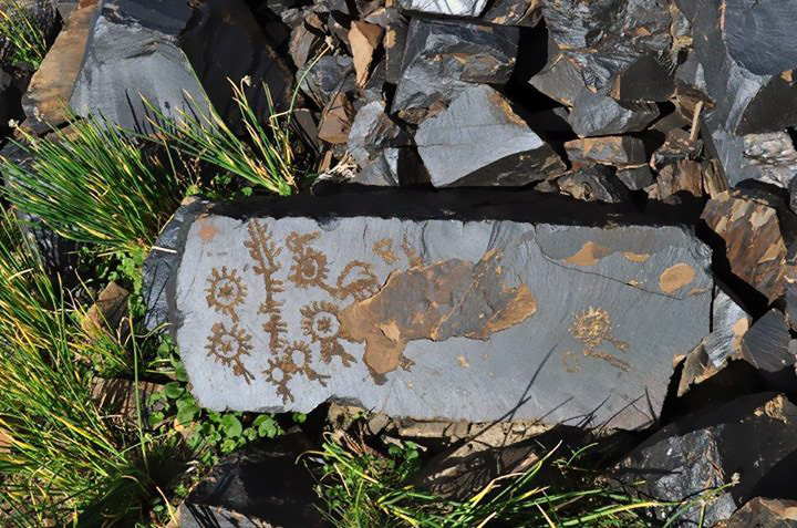 به گفته باستانشناسان، طرح این سنگها در قرن هشتم به وجود آمدهاند و اشعه خورشید باعث شده تا رنگ سنگها تغییر کند و نقاشیهای روی آن زیباتر به نظر برسند. در روی سنگها نقشهایی نظیر تصاویر حیوانات، خورشید، چرخدستی، چهرههای حیوانات و مردم آزاد آن زمان، تصاویر شخم زدن و نظیر آن به تصویر کشیده شده است که با وجود نقش و نگارهای زیاد، آنها را منتسب به پرستش خورشید نشان میدهد.