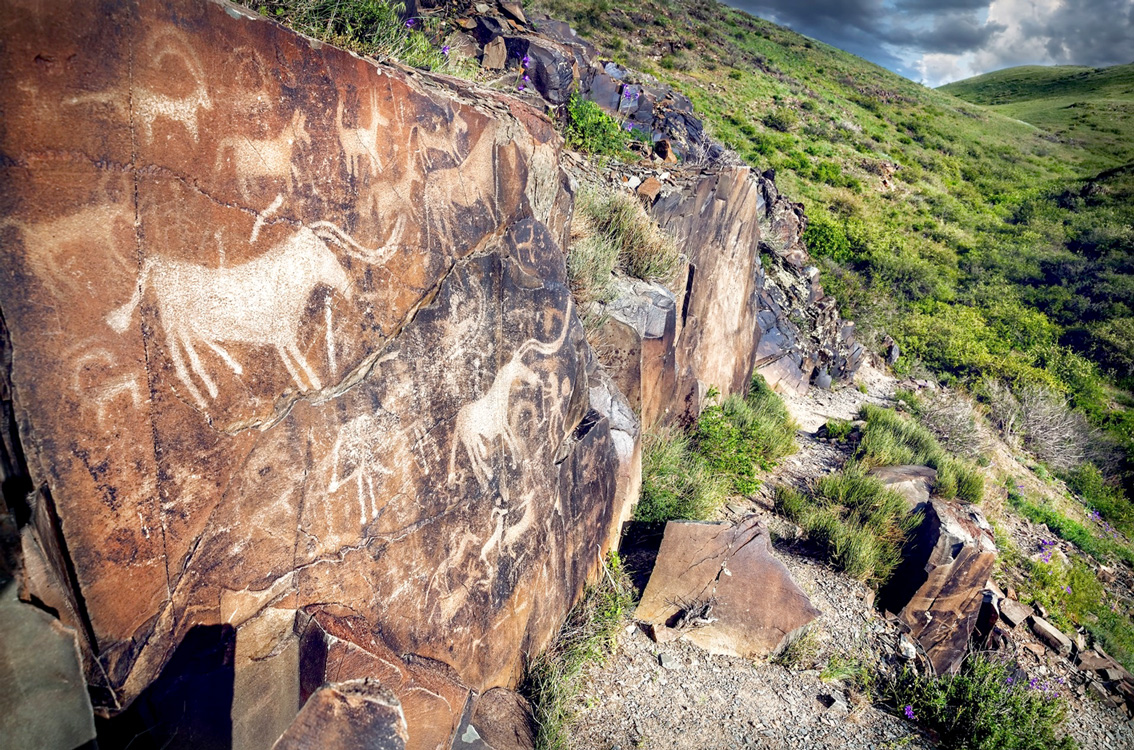 دسته اول سنگنگارهها حدود ۱۰ هزار اثر دارد و مربوط به هزاره سوم تا پنجم قبل از میلاد است. دسته دوم تصویری مربوط به هزاره اول قبل از میلاد است. آثار این دوره به موضوعات شکار و اهلی کردن حیوانات اختصاص دارد. این آثار در سبک معروف «سکا»یی (ایرانیان کوچتبار ساکن شرق دریای خزر) اجرا شده است. دسته دوم از آثار مربوط به هزاره اول است. تصاویر این دسته سوژه خاصی ندارند.