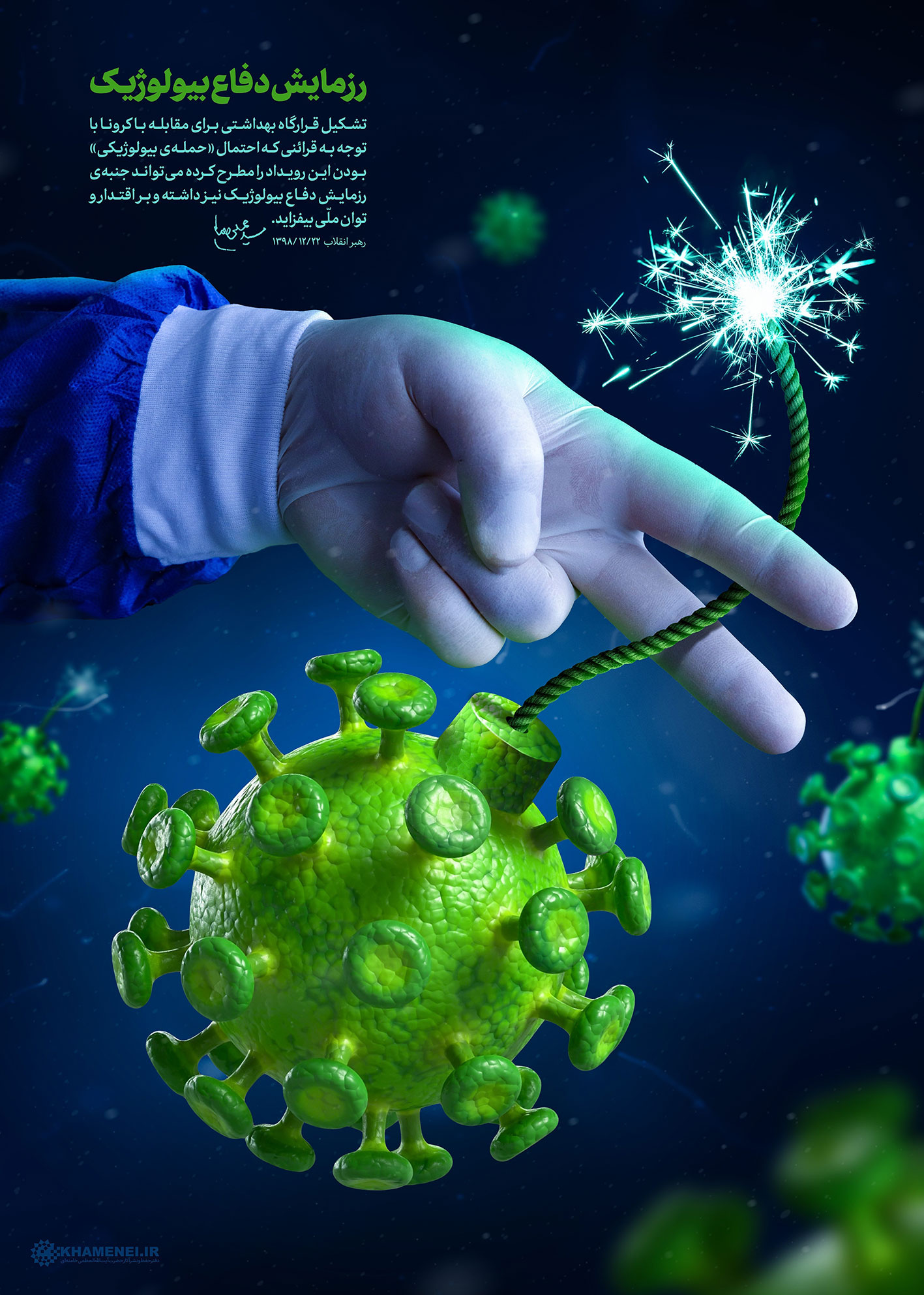 پایگاه اطلاع‌رسانی رهبر معظم انقلاب پوستر تازه خود را با عنوان «رزمایش دفاع بیولوژیک» طراحی و منتشر کرد.