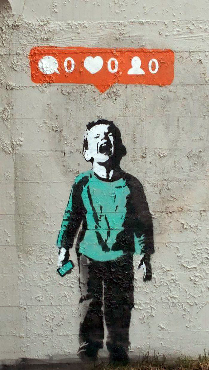 آثار این هنرمند بر دیوارهای بسیاری از شهرها نقش بسته و با هنر خیابانیاش بسیاری از مسائل اجتماعی و سیاسی روز را به چالش میکشد و هدف اصلی او اعتراض است.