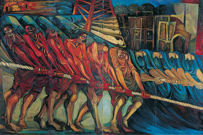 ایثار / کاظم چلیپا / 200 × 300 / رنگ و روغن روی بوم / 1360