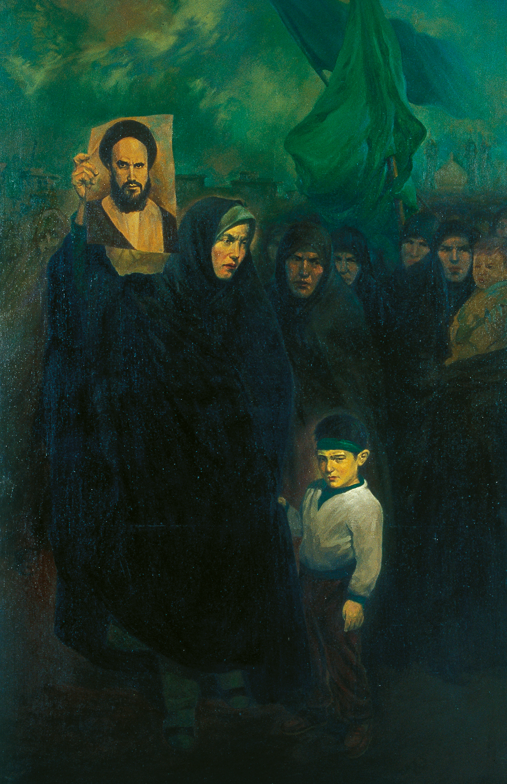 صبح پانزده خرداد / مصطفی گودرزی / 150 × 160 / رنگ و روغن روی بوم / 1365