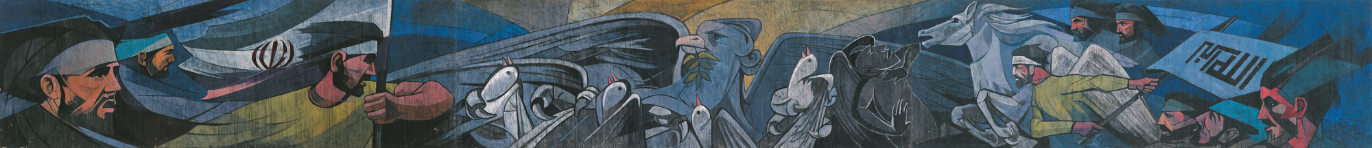 تشییع قلوب / حبیبالله صادقی / 170 × 110 / رنگ و روغن روی بوم / 1363