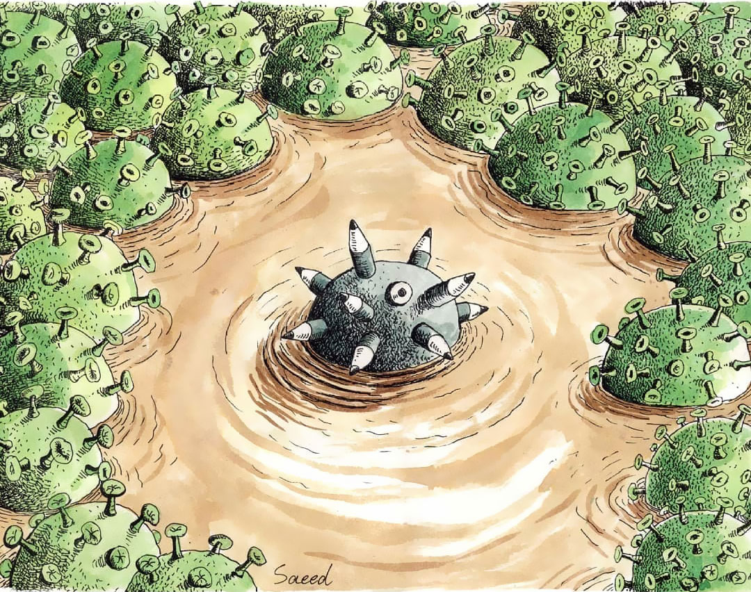 در ادامه، شماری دیگر از کارتون‌های «سعید صادقی» با موضوع کرونا را مشاهده می‌کنید :