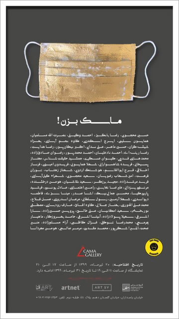 نمایشگاه «ماسک بزن» از ۲۰ تا ۳۱ تیرماه در گالری کاما برپاست. علاقمندان برای بازدید از این نمایشگاه همه روزه به جز یکشنبهها از ساعت ۱۱ تا ۱۹ میتوانند به این گالری مراجعه کنند.