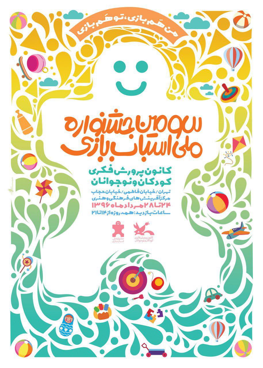 پوستر سومین جشنواره ملی اسباببازی کانون پرورش فکری، که اثری است از حسین یوزباشی که بر بازیهای فردی و گروهی متداول در ایران اشاره دارد، منتشر شد.