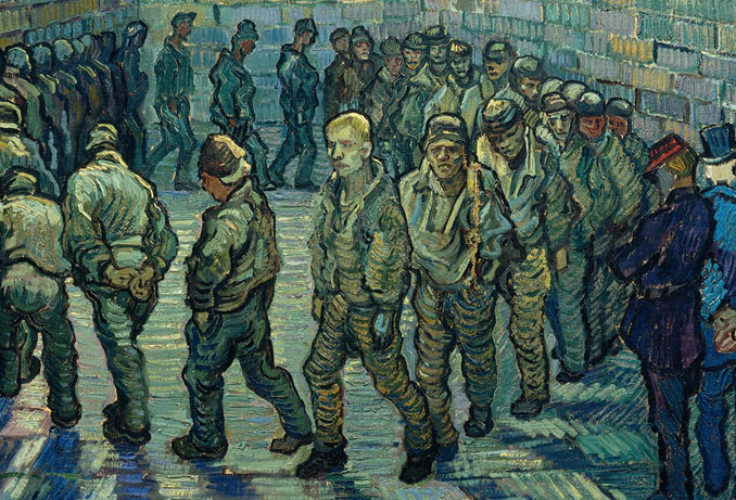 اما واقعیت زندگی او مسیر دیگری را پیمود. پنج ماه بعد از خلق این اثر، ونگوگ با شلیک به سینه خودکشی کرد و به رنج روحی خویش پایان داد. حلقه زندانیان یکی از تابلوهایی بود که پیش از تشیع جنازه در کنار تابوت وی قرار داشت و حالا در موزه دولتی پوشکین در مسکو نگهداری میشود.