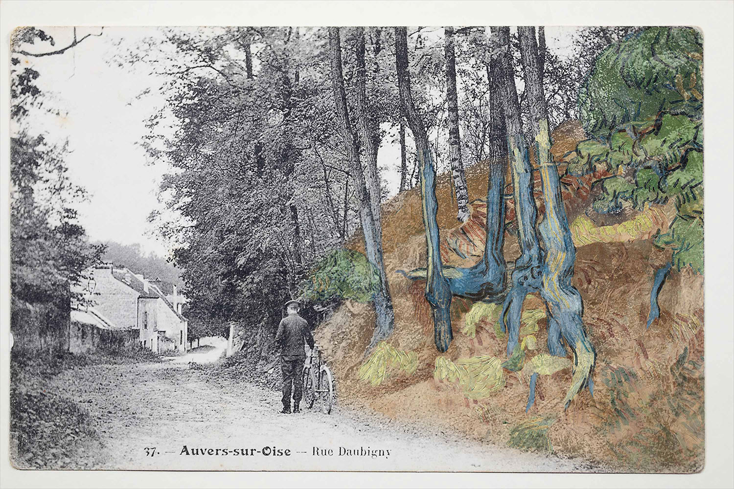 «ون در وین» پس از بازگشایی فرانسه در ماه «می» به محلی که تصویر کارت پستال در آن عکسبرداری شده سفر کرد. تابلو نقاشی «ریشه درخت» در جاده‌ای در شهر «اور سور اواز» جایی در چند کیلومتری مکانی که «ون‌گوگ» ۷۰ روز پایانی زندگی‌اش را گذرانده بود، خلق شده است.