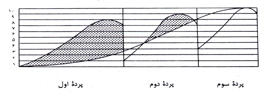 همان گونه که اشاره شد، بحران با ایجاد درگیری عاطفی میزان هیجان مخاطب را بالا میبرد. اما نباید دامنه یک بحران را بیش از حد لازم گسترش داد. چرا که توانایی خندیدن افراد بر یک واقعه کمیک که خود ناشی از یک موقعیت بحرانی است، حدی دارد. (مسئلهای که در طنزهای سخیف اتفاق میافتد.) بنابراین لازم است که صحنهها را به گونهای چید که بر اساس ظرفیت تماشاچی بحرانها شکل بگیرند و رفته رفته بحرانها شدت یابند و آخرین بحران کمیکترین وضعیت را شامل شود. برای این کار در ابتدا بالاترین بحران نمایش (که معمولاً در نقطه اوج داستان هم قرار میگیرد.) از طریق تعیین سختترین کشمکش میان شخصیت کمدی و سایر افراد داستان مشخص میشود. سپس بقیه بحرانها با شدتی کمتر در کنار بحران اصلی و به ترتیب سنگینی حوادث شان چیده میشوند. بدین ترتیب، میتوان نتیجه گرفت؛ بهتر است کمیکترین صحنهها را به سه چهارم پایانی فیلم اختصاص داد. هرچه نمایش کمیکتر باشد ریتم آن تندتر و صحنهها کوتاهتر و تعداد بحرانها نیز بیشتر خواهند بود. چرا که در نمایشهای کمدی نویسنده کمتر به جزئیات میپردازد و اشخاص بازی هم مرتباً از یک «در» وارد میشوند و از «در» دیگر بیرون میروند. در نمودار زیر سیر صعودی بحرانها به ترتیب مشخص شده است.