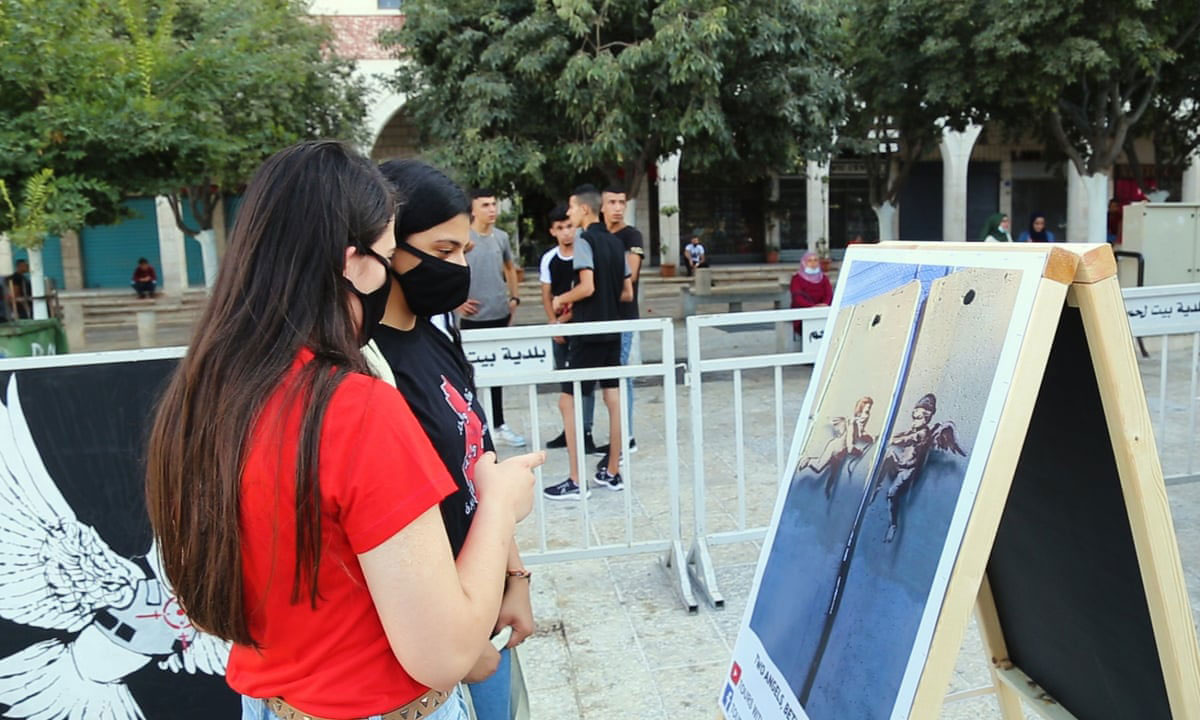 به گزارش روابط عمومی مرکز تجسمی حوزه هنری به نقل از ایسنا، عکاسان فلسطینی در قالب نمایشگاهی غیرمنتظره تصاویری از آثار هنری «بنکسی» هنرمند ناشناش و پرآوازه بریتانیایی را در میدان المهد شهر بیتلحم به نمایش گذاشتند.