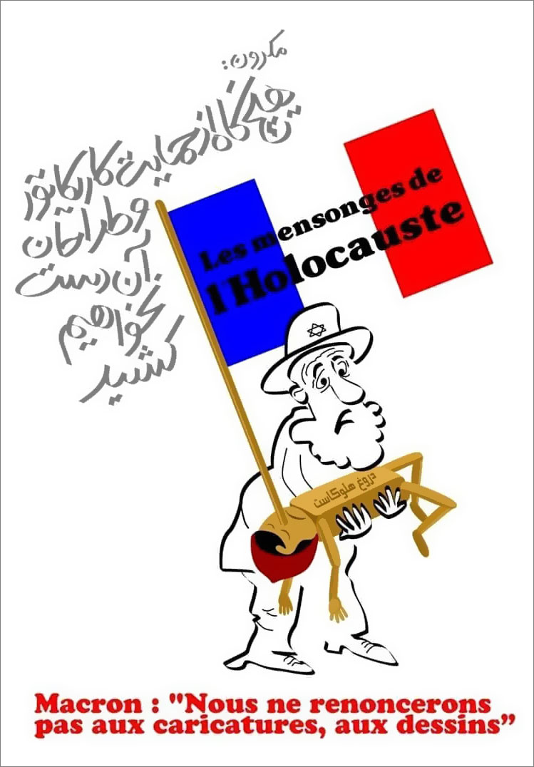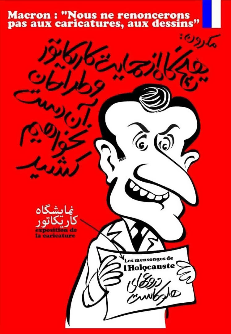 او همچنین دو کاریکاتور با موضوع «ماکرون» و «هولوکاست» منتشر کرد.