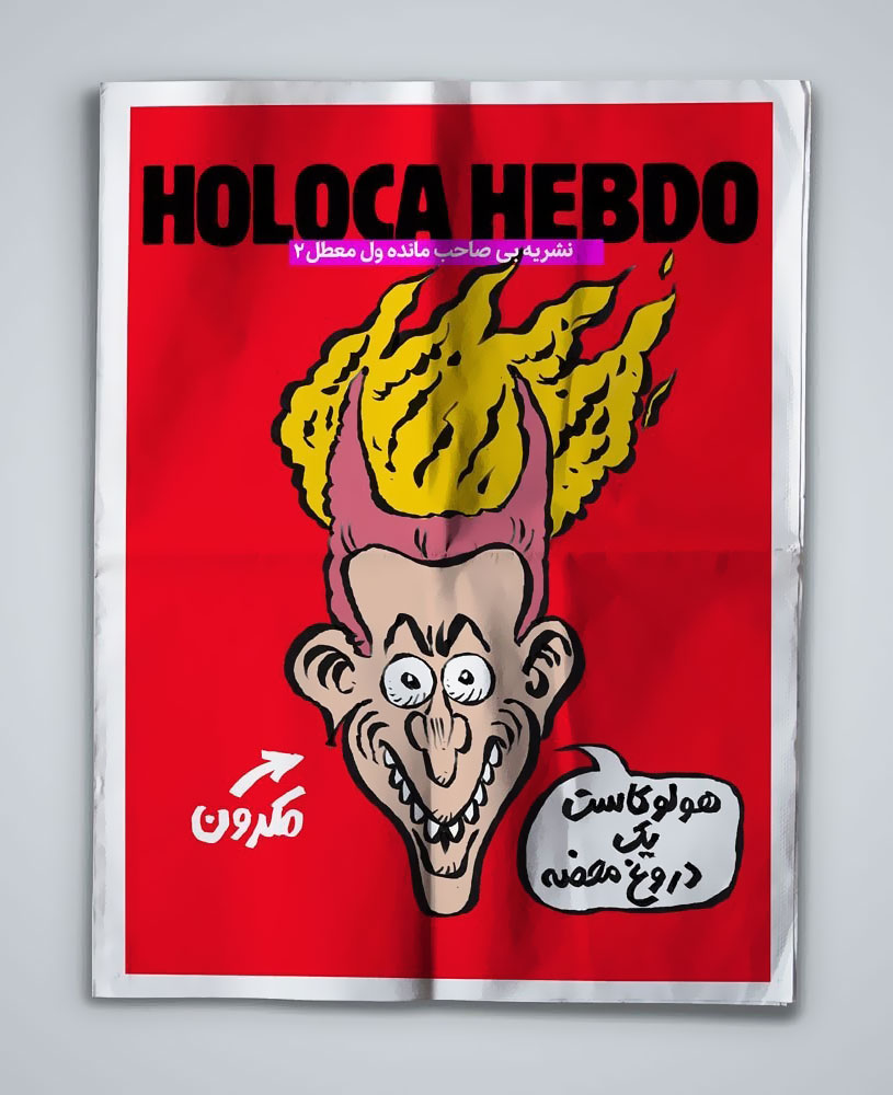 محمدحسین نیرومند هنرمند کارتونیست کشورمان در واکنش به این موضوع نوشت: خوشبختانه رئیس جمهور فرانسه با بیان این مطلب که گفت: «هیچگاه از حمایت کاریکاتور و طراحان آن دست نخواهیم کشید» مجوز طراحی کاریکاتور بر اساس موضوع دروغهای هولوکاست را صادر کرد. بنابراین ما به عنوان کاریکاتوریست از این پس این موضوع را دستمایه کار خود قرار خواهیم داد و با سایر دوستان کارتونیست در داخل و خارج کشور نمایشگاه «هولوکاست ۳» را در آینده نه چندان دور برگزار خواهیم کرد.