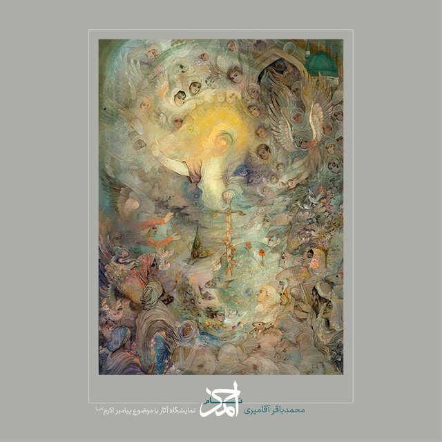 هنرمندانی که آثارشان از گنجینه موزه هنرهای معاصر در این نمایشگاه عرضه میشود عبارتند از: محمدباقر آقامیری اثری به نام محبت ازلی، ضیاءالدین امامی اثری با نام آفرینش آدم، اصغر جوانی اثری به نام اسراء، رافت نگارنده اثری به نام منور، حبیباله آیتالهی اثری به نام کعبه نور، نصراله افجهای اثری به نام مجلس اول، محمد احصایی اثری به نام لا اله الا الله، جلیل رسولی با اثر سوره حمد.