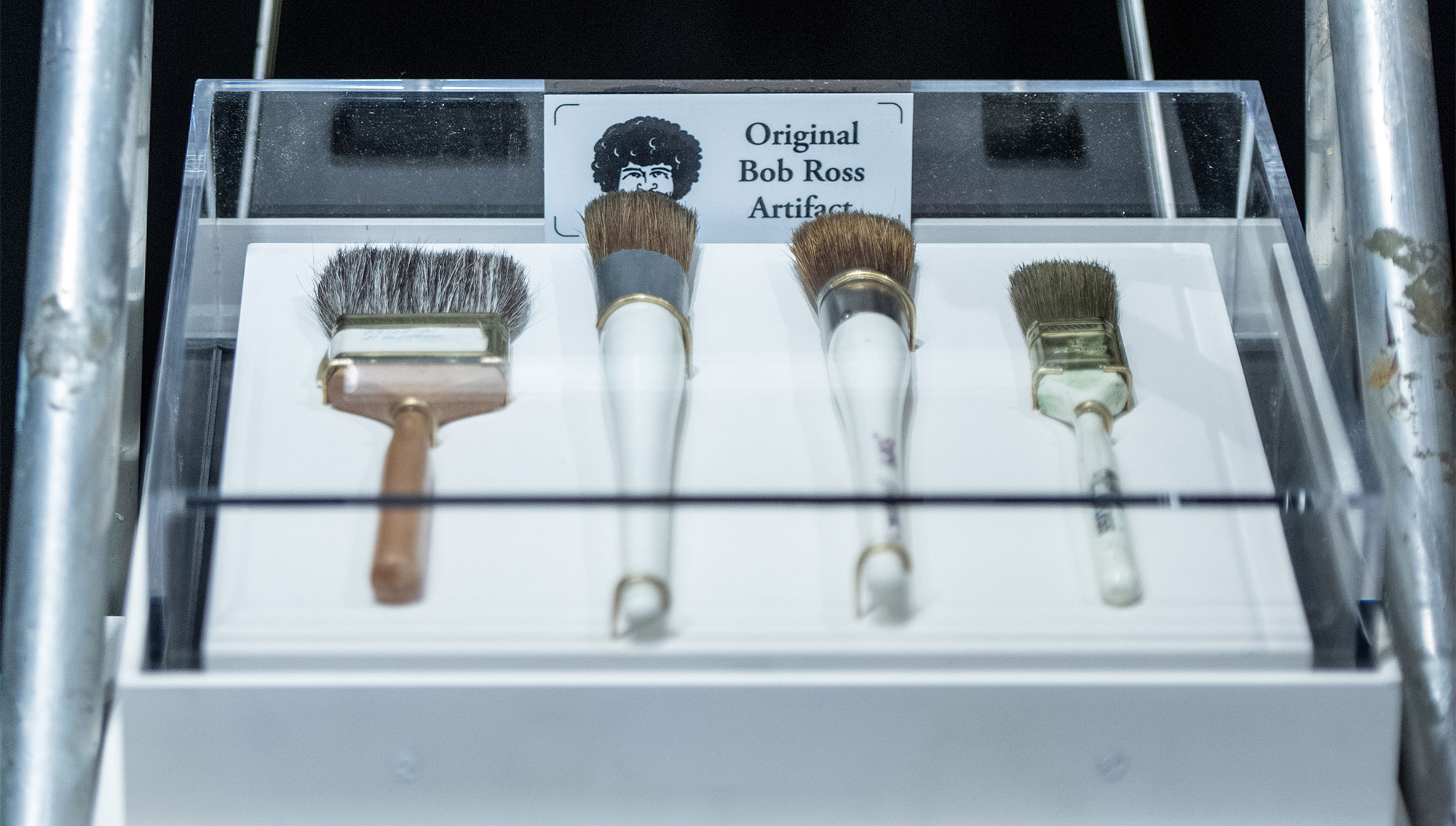 در این نمایشگاه یک میلیون و ۲۰۰ هزار دلاری واقع در شهر مونسی ایالت ایندیانا، که تجربه باب راس (Bob Ross Experience) نام دارد، صحنه فیلم‌برداری لذت نقاشی به گونه‌ای بازآفرینی شده است که گویی راس با همان صدای دلنشینش به هنرجویان پشت صفحه تلویزیون می‌آموزد که چگونه از ادغام رنگ‌های آبی و صورتی برای کشیدن آسمان استفاده کنند یا در جای لازم سایه روشن بزنند.