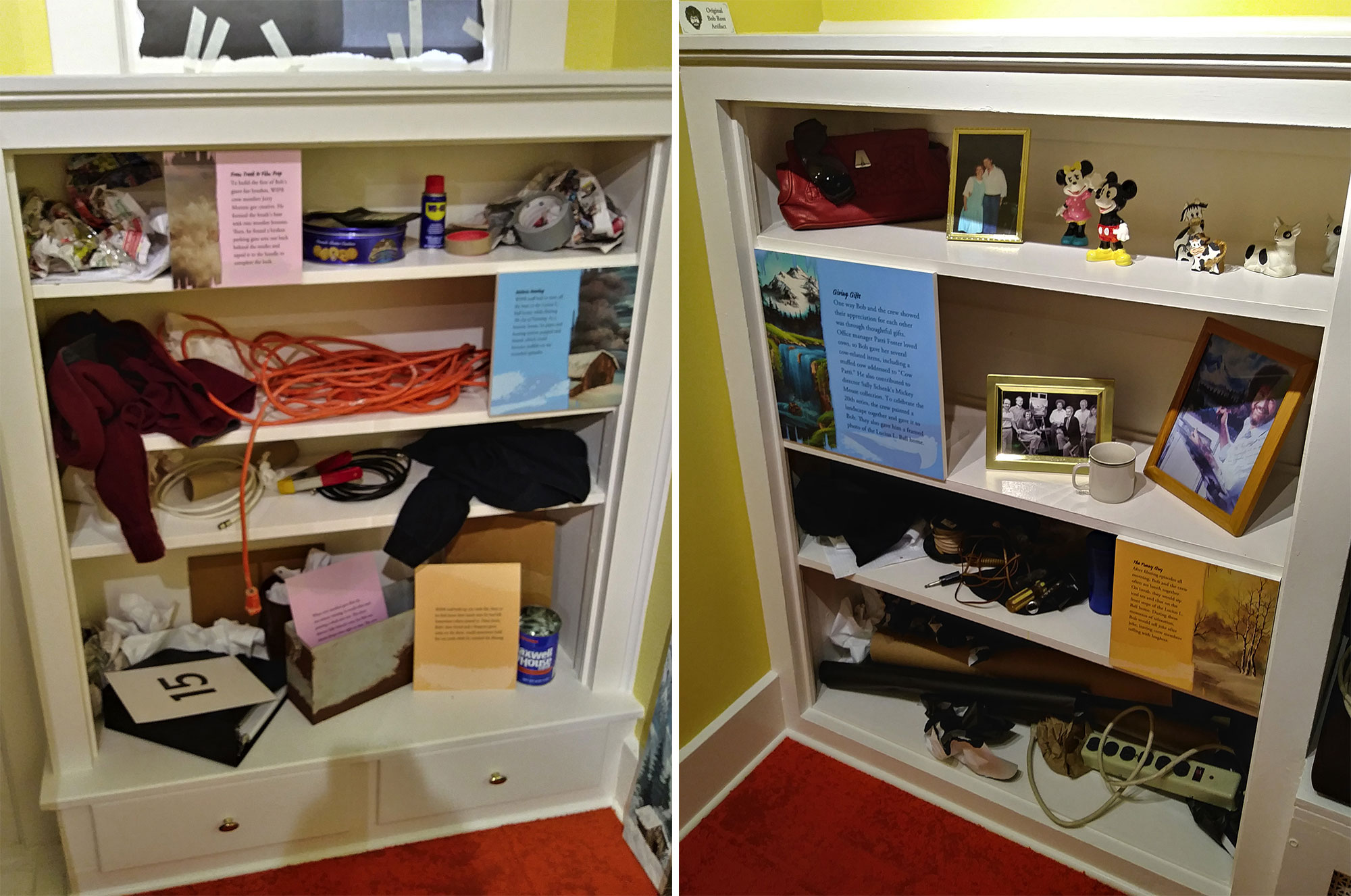 در این نمایشگاه یک مجموعه منتخب از تابلوهای معروف این هنرمند آمریکایی از جمله کوهستان خاکستری (Gray Mountain) و غروب آگلو (Sunset Aglow) ردیف شده‌ و یک اتاق نشیمن به سبک دهه ۸۰ میلادی (هم‌زمان با دوران ساخت لذت نقاشی) برای بازدیدکنندگان تدارک دیده شده است. در این نمایشگاه همچنین می‌توان در کنار سایر یادگارهای باب راس، از وسایل شخصی وی از شانه سر گرفته تا دسته کلیدش نیز بازدید کرد. به جز کاردک نقاشی، سه‌پایه و قلموهای این هنرمند آمریکایی، لمس اکثر مصنوعات موزه برای بازدیدکنندگان مجاز است.
