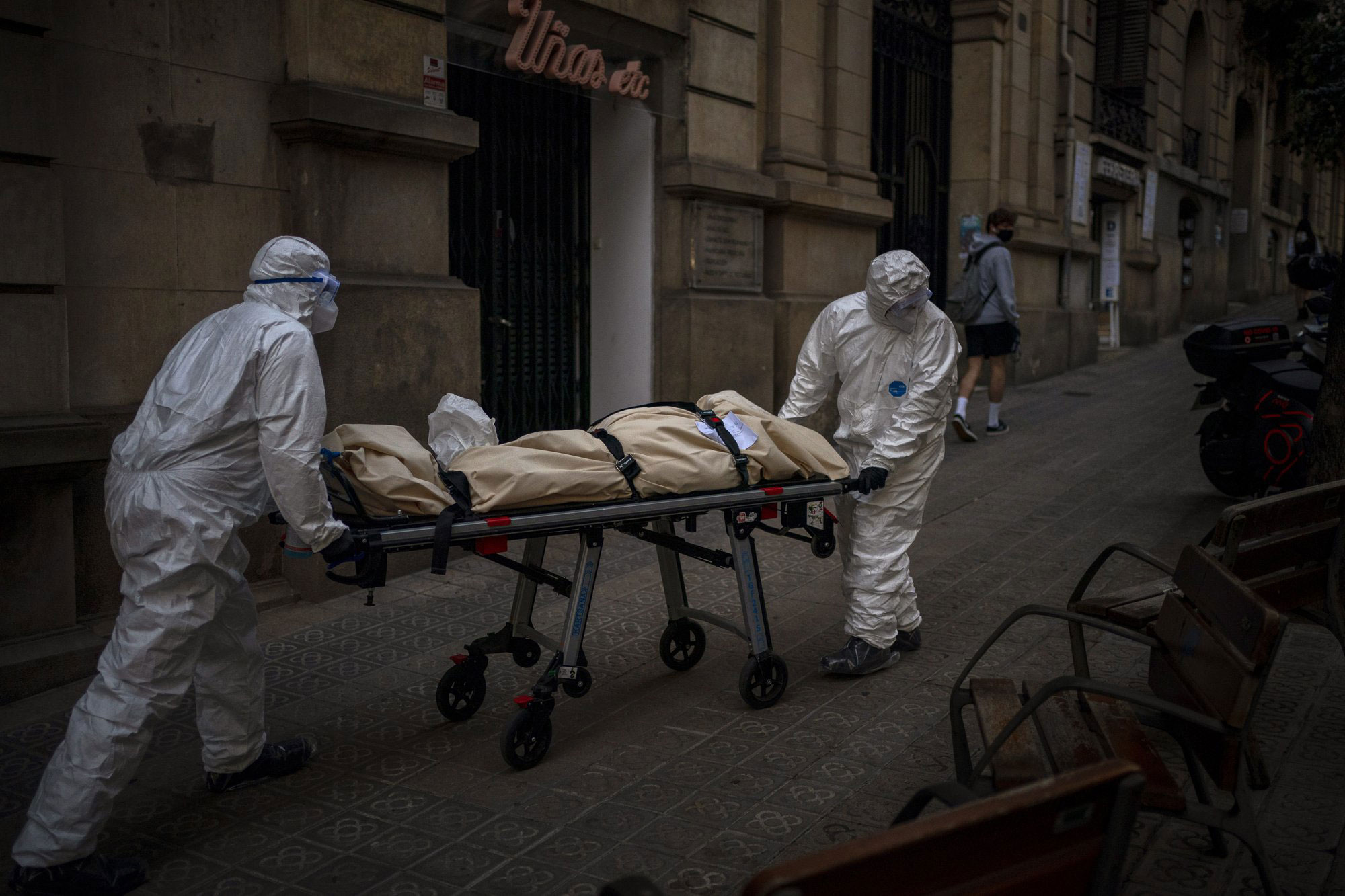 انتقال جسد فردی که بر اثر ابتلا به کرونا در خانه سالمندان جانش را از دست داده / اسپانیا - اسوشیتدپرس
