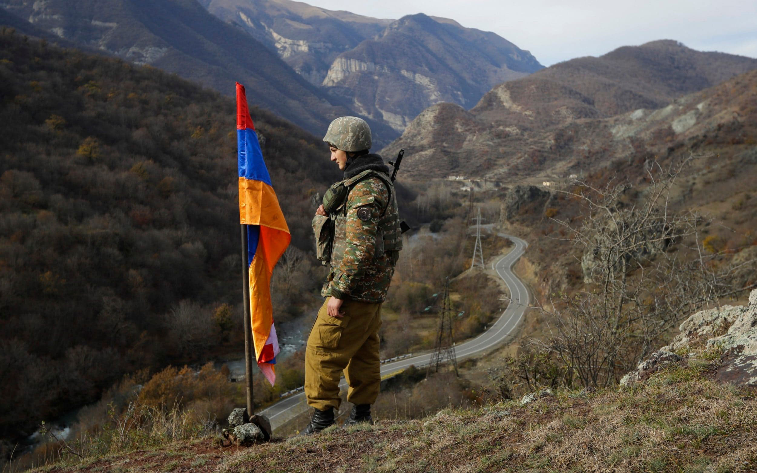یک سرباز ارمنی که بر تپهای در شهر «کلبجر» ایستاده است / ارمنستان - اسوشیتدپرس