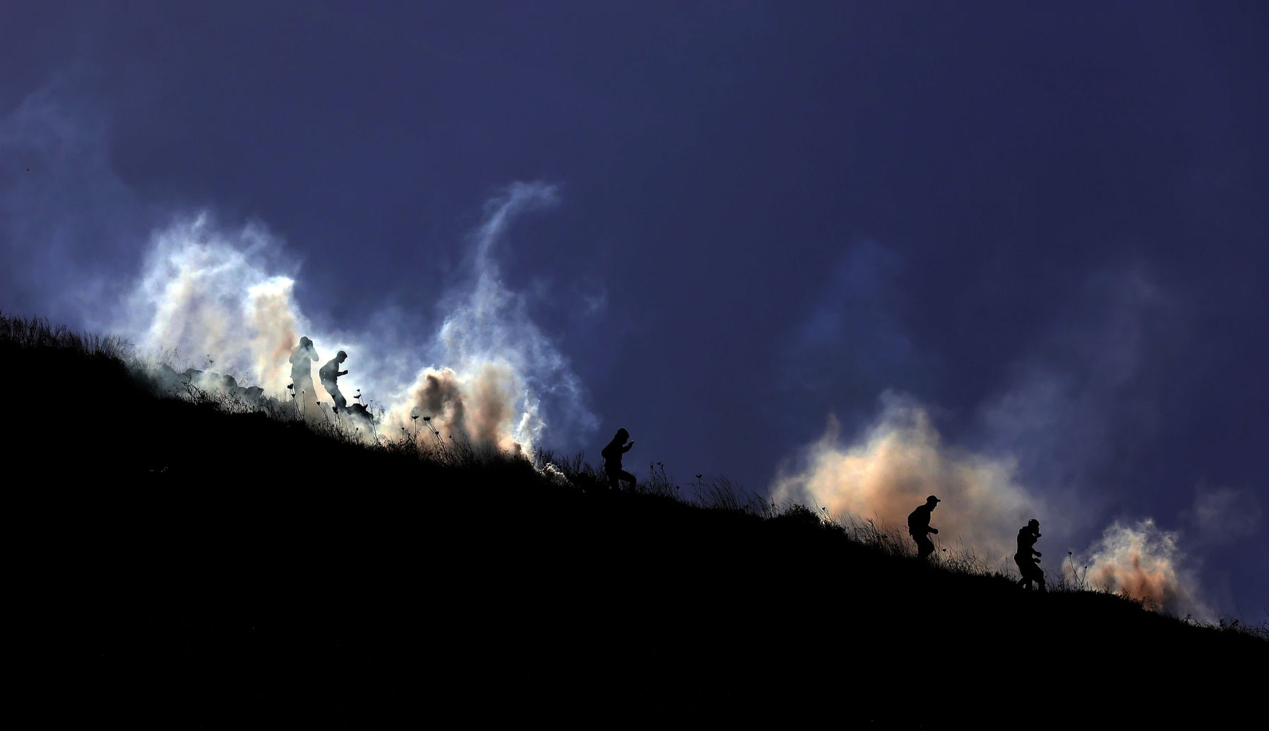 پرتاب گاز اشکآور توسط سربازان رژیم صهیونیستی به سمت معترضان فلسطینی که در تظاهرت علیه شهرکسازی رژیم صهیونیستی شرکت کردهاند. / فلسطین اشغالی