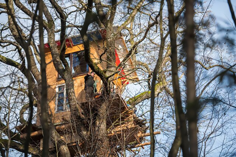ماموران پلیس حین پاکسازی خانههای درختی آخرین معترضان ادامه ساخت و ساز بزرگراه A۴۹ در جنگلی واقع در هومبرگ. / آلمان
