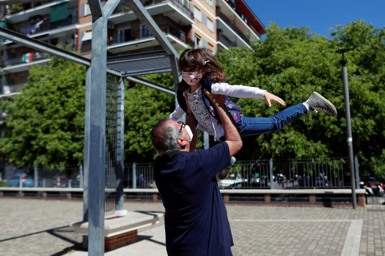 با لغو قرنطینه یک پدربزرگ و نوه پس از دو ماه با یکدیگر ملاقات کردند / ایتالیا / ۴ مه ۲۰۲۰