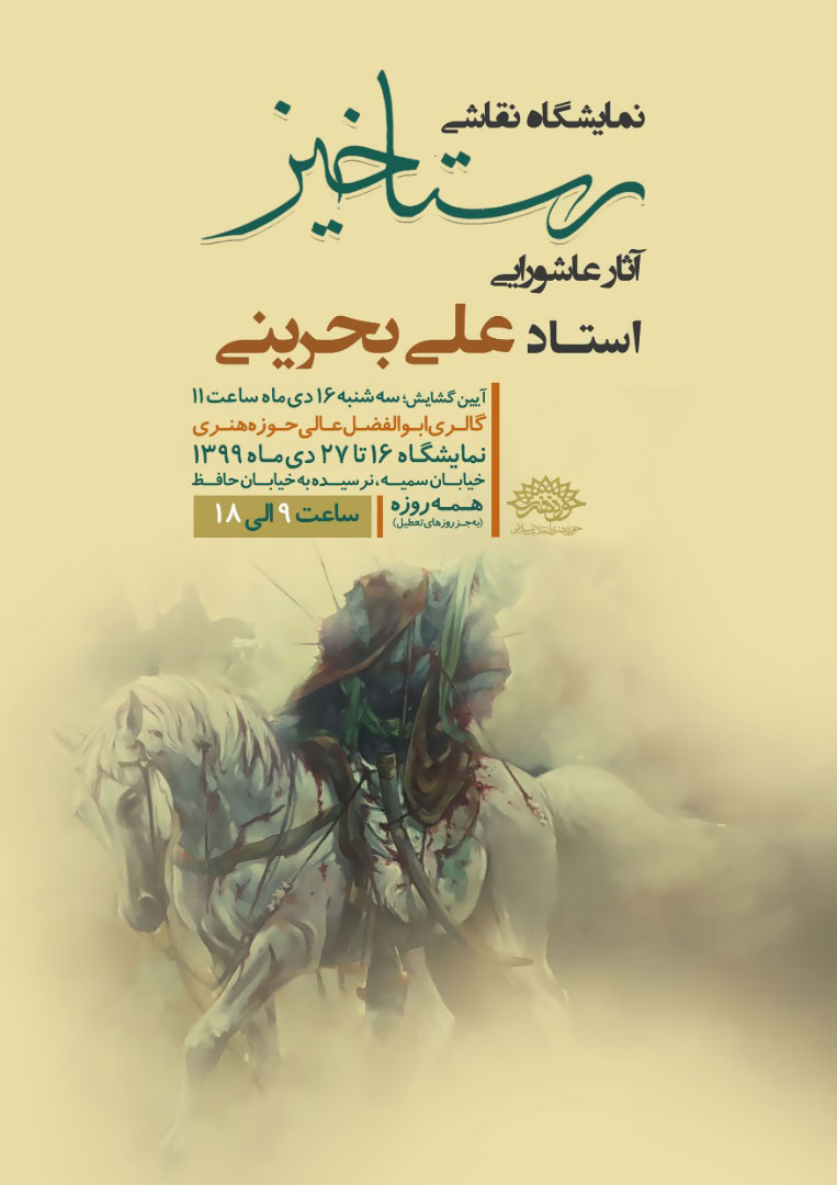 نمایشگاه نقاشی عاشورایی «رستاخیز» با آثاری از علی بحرینی از ۱۶ تا ۲۷ دی‌ماه همه روزه به جز روزهای تعطیل از ساعت ۹ تا ۱۸ میزبان علاقه‌مندان خواهد بود.