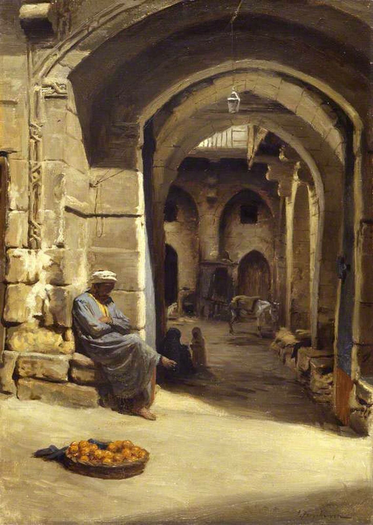 «جوزف فارکوسن» در «ادینبرگ» متولد شد و بیشتر برای خلق تابلوهای نقاشی از منظرههای اسکاتلند و حیوانات شهرت دارد. او چندین تابستان را در پاریس جایی که به تمرین نقاشی کردن مشغول بود گذراند و در سال ۱۸۸۵ به آفریقای شمالی سفر کرد؛ تجربهای که شاید الهامبخش تابلوی نقاشی «پرتقال فروش» بوده است.