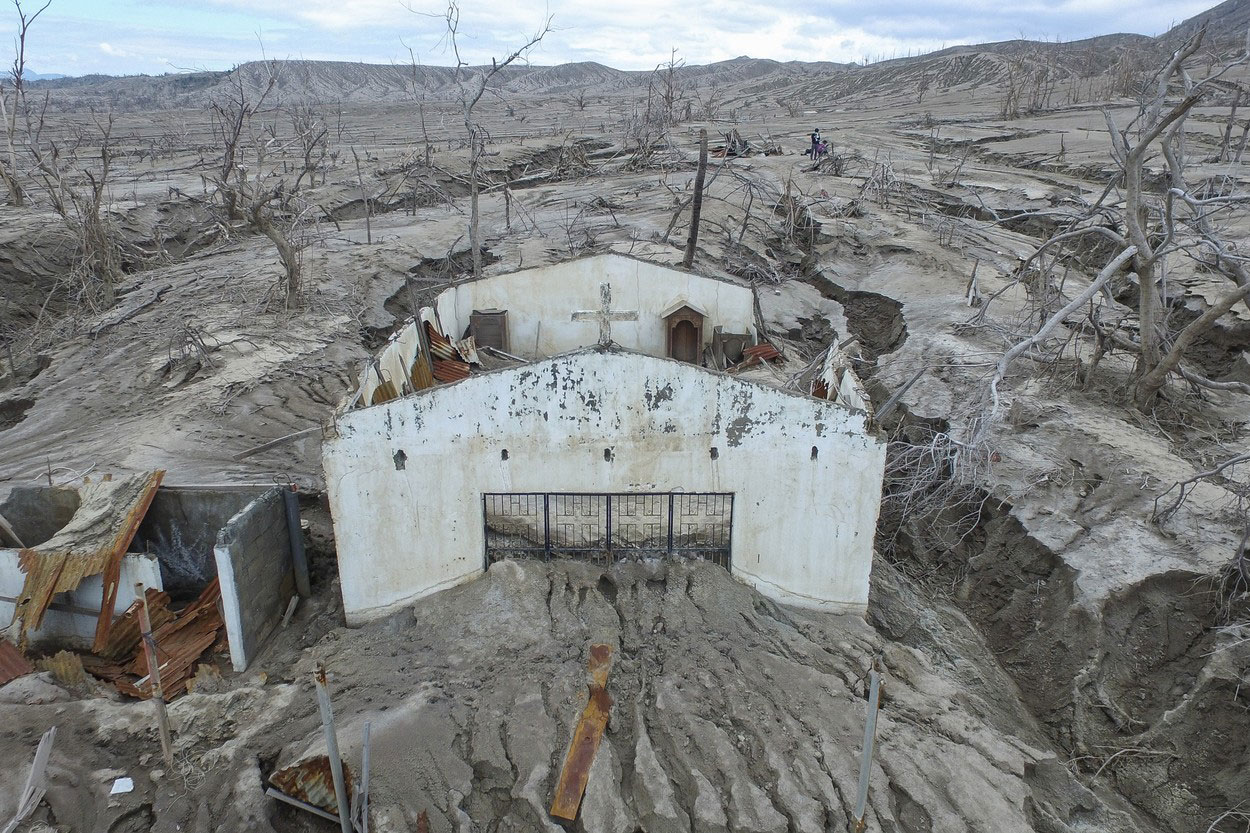 کلیسایی که بر اثر فوران آتشفشان «تال» در «باتانگا» صدمه دیده است. از زمان فوران این آتشفشان که به آواره شدن هزاران نفر منجرشده است، یک سال میگذرد / فیلیپین