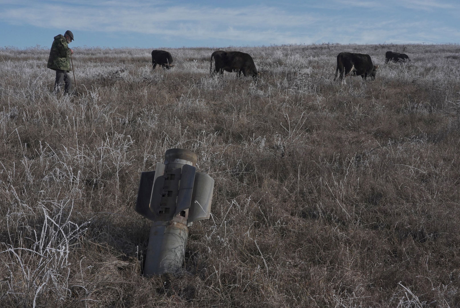 چرای گاوها در کنار راکتی که پس از نزاع نظامی در منطقه ناگورنو قرهباغ به جای مانده است / رویترز