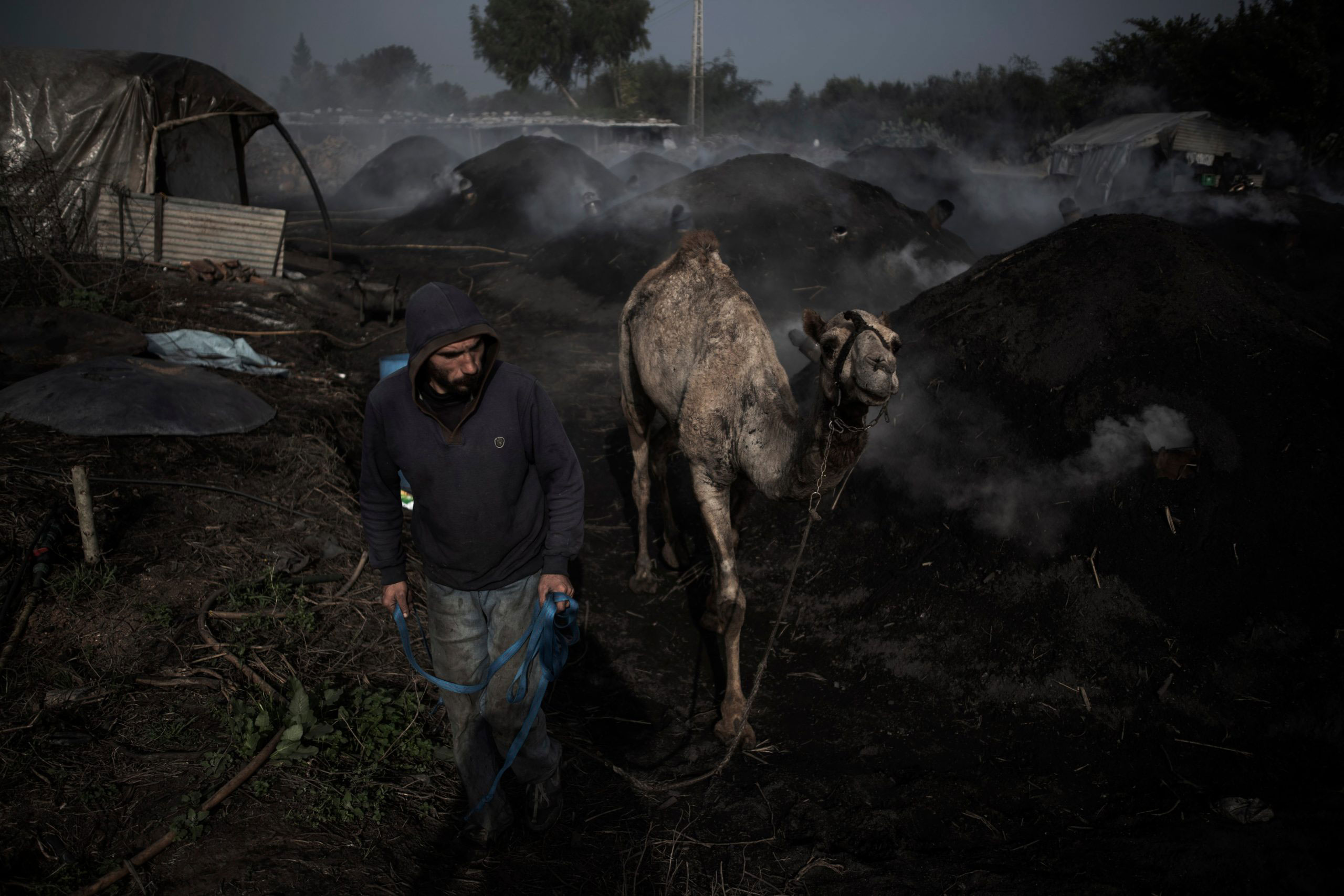 تصویری از یک فلسطینی در کارگاه سنتی تولید ذغال چوب / غزه / اسوشیتدپرس