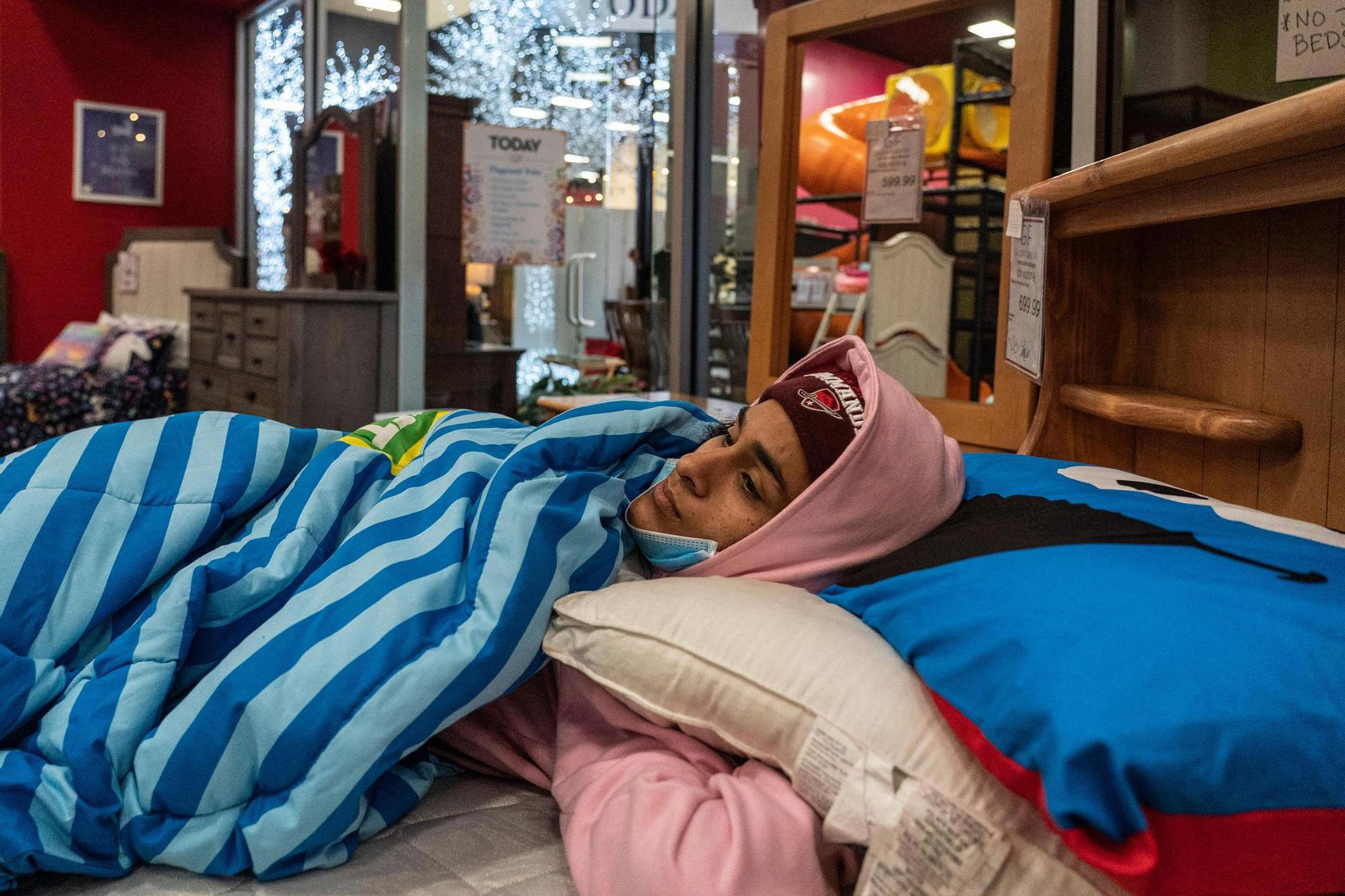 تصویر شخصی که پس از کاهش دمای شدید و قطع برق در تگزاس در یک فروشگاه لوازم خانگی که به یک گرمخانه تبدیل شده، پناه گرفته است./ ایالات متحده آمریکا