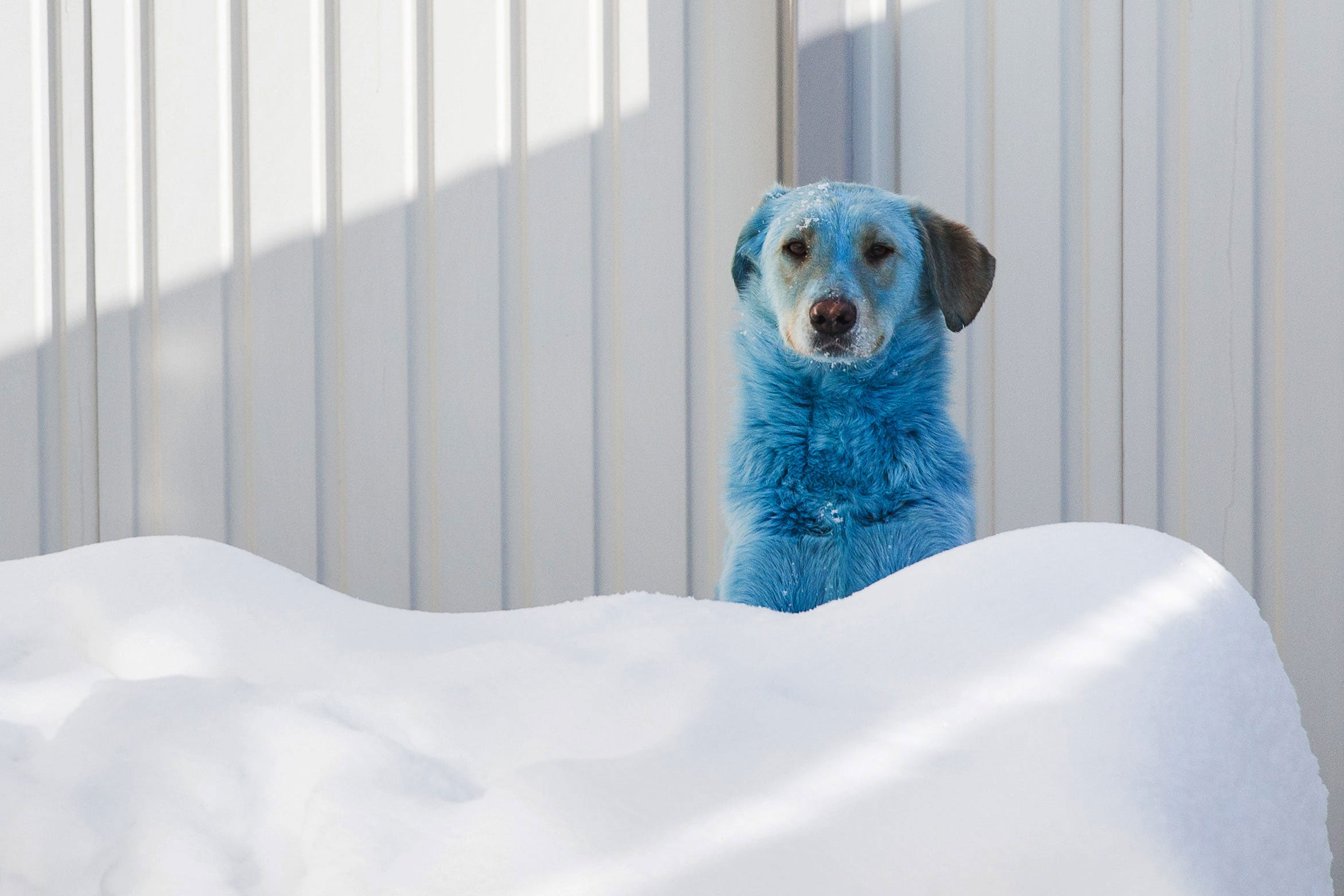 ۱۳ سگ ولگرد با موهای آبی رنگ پیدا شدند. گفته شده که علت این موضوع وجود کارخانه ساخت مواد شیمیایی در آن منطقه بوده است. این سگ‌ها اکنون در یک کلینیک دامپزشکی تحت مراقبت هستند./ روسیه