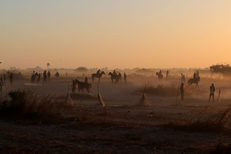 تصویری از سوارکاران حرفه‌ای که پیش از آغاز جلسه تمرین صبحگاهی اسب‌سواری می‌کنند./ سنگال / رویترز