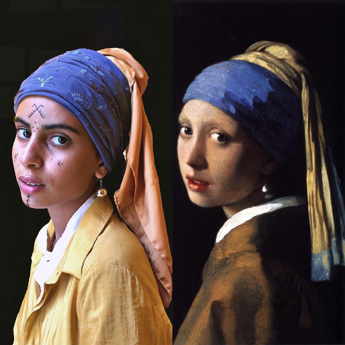 دختری با گوشواره بامبو از هنرمند آمریکایی اتیوپیایی اوول اریزو (Awol Erizku) که در سال ۲۰۰۹ با بازسازی اثر نقاشی یوهانس ورمیر توسط یک زن سیاه پوست جوان انجام شد گوشواره های بامبو را جایگزین گوشواره های مروارید در این اثر کرد.