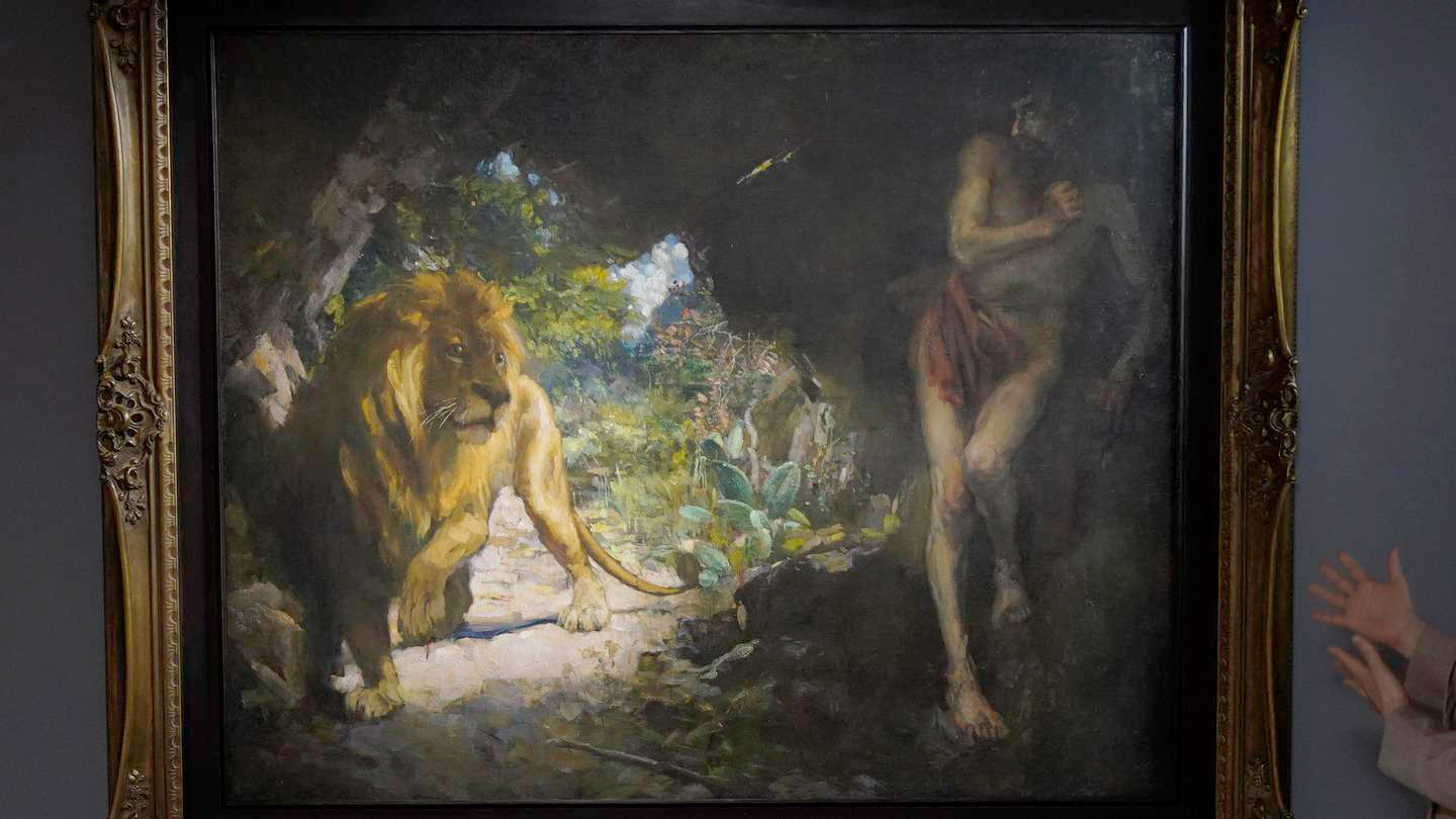به گفته کریستیز داستان این نقاشی در اساطیر رومی ریشه دارد. یک برده فراری پس از دستگیر شدن به عنوان مجازات به همراه یک شیر در کولوسئوم حبس شده بود. اما شیر به او حمله نکرد چراکه این اسیر پیشتر خاری را از پنجه این شیر بیرون کشیده بود. شیر و اسیر در نهایت هر دو رها شدند.
