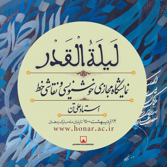 به گزارش روابط عمومی مرکز تجسمی حوزه هنری به نقل از روابط عمومی موزه هنرهای معاصر فلسطین، نمایشگاه مجازی خوشنویسی و نقاشیخط علی تن با عنوان «لیلة القدر» همزمان با فرارسیدن شبهای قدر در وبگاه فرهنگستان هنر به نمایش گذاشته شد.