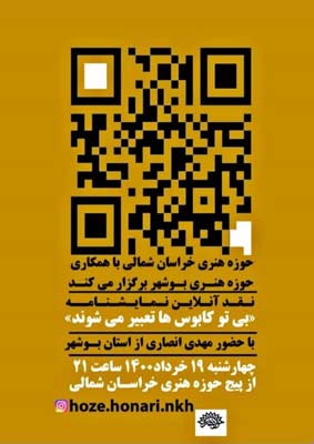 به گزارش روابط عمومی حوزه هنری خراسان شمالی، نشست مجازی نقد و بررسی نمایشنامه «بی تو کابوسها تعبیر میشود» به نویسندگی عقیل جماعتی با حضور مهدی انصاری مسئول واحد هنرهای نمایشی حوزه هنری بوشهر، محمد ساکی از هنرمندان و صاحبظران جوان عرصه تئاتر استان و سید مهدی کشمیری مسئول واحد هنرهای نمایشی حوزه هنری خراسان شمالی برگزار شد.