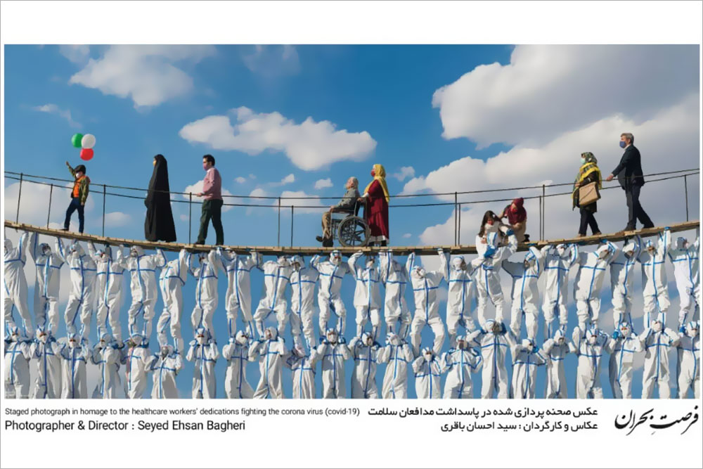 سیداحسان باقری؛ هنرمند عکاس و مدیر خانه عکاسان ایران، درباره ایده اجرای عکس صحنهپردازی شده با عنوان «فرصت بحران» گفت: در ابتدا باید بگویم که عنوان «فرصت بحران» از یکی از جملات سردار شهید سلیمانی وام گرفته شده است. نکته بعدی اینکه، معمولاً وقتی موضوع مهمی که اولویت جامعه است، ذهنم را درگیر میکند در صدد بر میآیم که روی این موضوع کاری ویژه انجام دهم. مهمترین اتفاقی که در طی یک سال و نیم گذشته جامعه و مردم با آن درگیر بودند، مساله کرونا و به ویژه بسیج و جهاد همگانی مدافعان سلامت و پرستاران و فداکاریهای آنها بود.