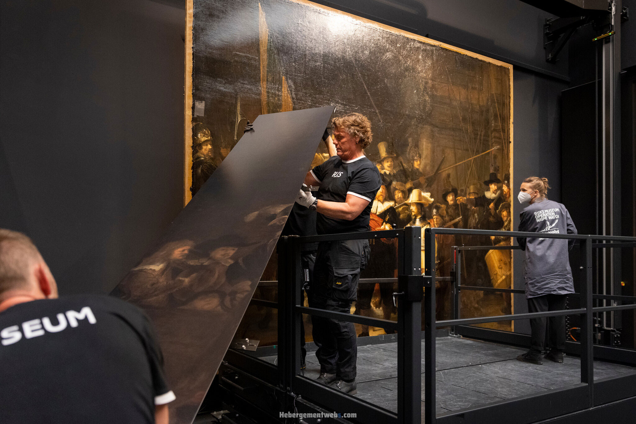 در سال ۱۷۱۵ بخشهایی از این نقاشی بزرگ از هر چهار وجه جدا شد تا امکان نصب آن بین دو در ساختمان اصلی آمستردام فراهم شود. بخشهای جداشده تابلو نقاشی گم شدند و نقاشی اصلی نیز از قرن نوزدهم در موزه ملی آمستردام، در مرکز ساختمان این موزه به نمایش گذاشته شده است.