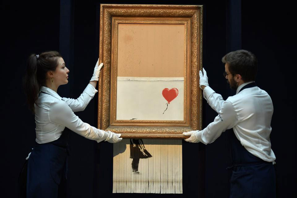 وقتی این نقاشی در سال ۲۰۱۸ در لندن به وسیله دستگاهی که در قاب نقاشی پنهان شده بود به صورت نصفه و نیمه تکه تکه شد، دنیای هنر را در شوک فرو برد.