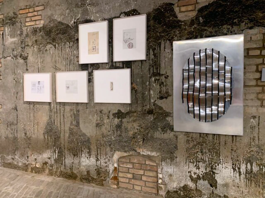 تصویری از نقش برجسته و اتودهایی که در طبقه اول به نمایش گذاشته شده‌اند