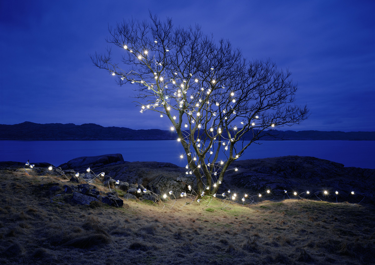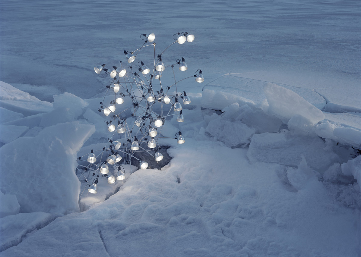 در میان چیدمان های رون گونریسن، بعضا با چراغ های تزیینی متنوعی مواجه می شویم که با نورافشانی ظریف و ملایم شان مناظر برفی را در شب به چشم اندازهای با شکوهی تبدیل کرده اند. این مناظر با با چیدمان هایی که توسط دست بشر دگرگون شده اند، حسی از سکوت و مراقبه را در انسان بر می انگیزند و فضایی رویایی را به وجود می آورند.