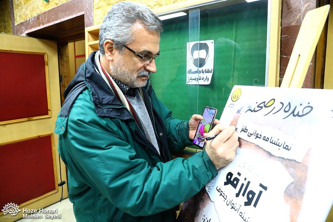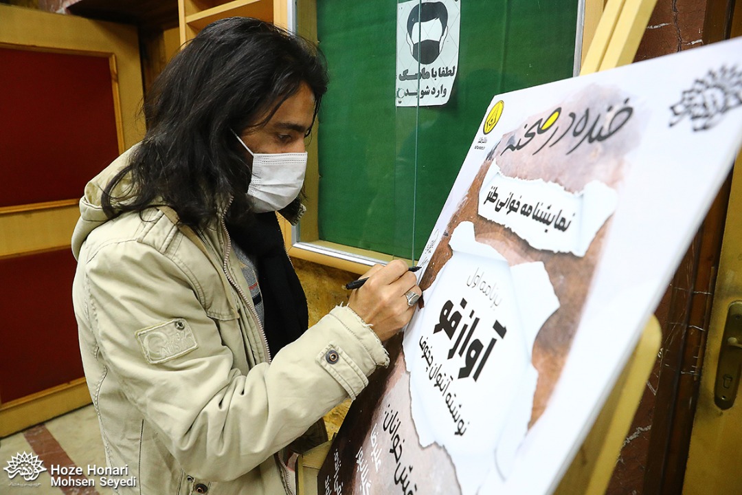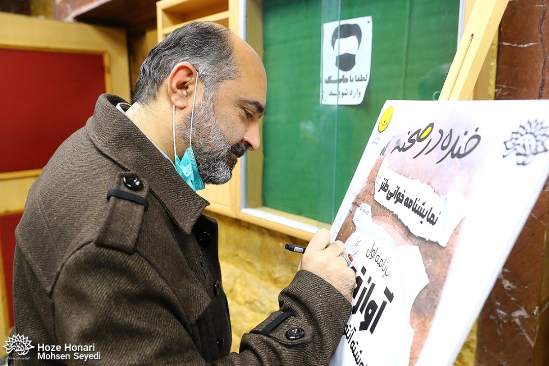 در پایان حاضران پوستر این برنامه را که به همت دفتر طنز حوزه هنری برگزار ‌شد؛ امضا کردند.