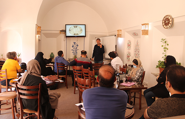 هنرجویان در ادامه با موتیف‌ها و عناصر تزئینی، فرم‌های هندسی، گیاهی و تصویری و همچنین شیوه تولید نمونه‌های امروزی این آثار بر اساس همان نگاه و ترکیب‌بندی، آشنا شدند.