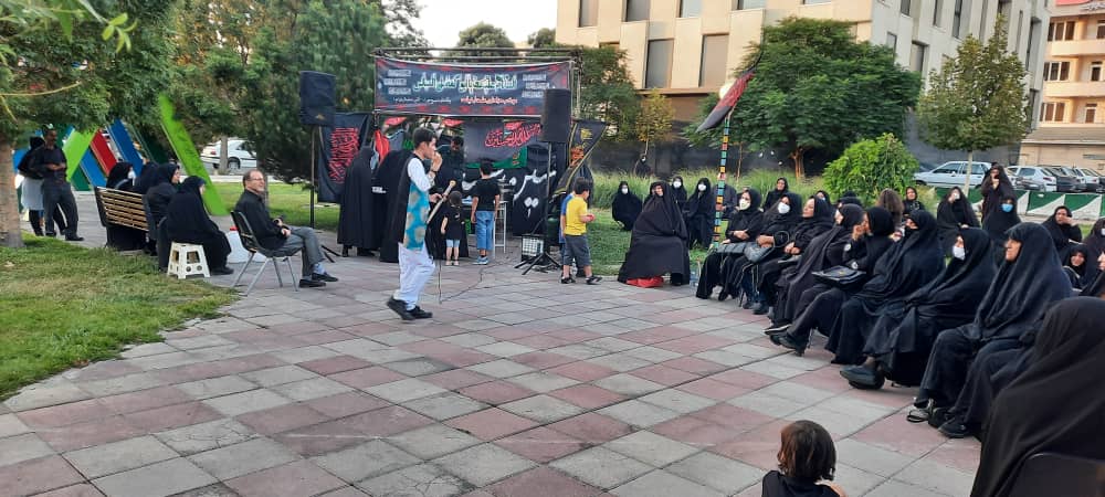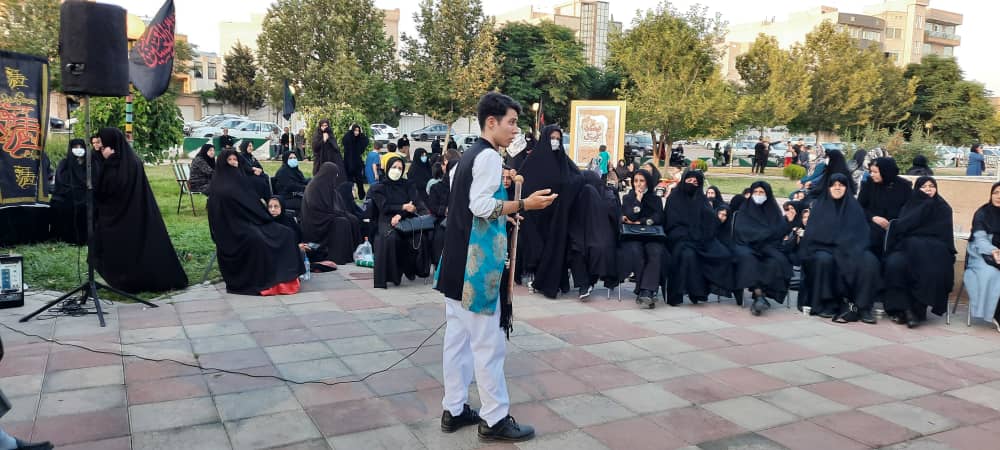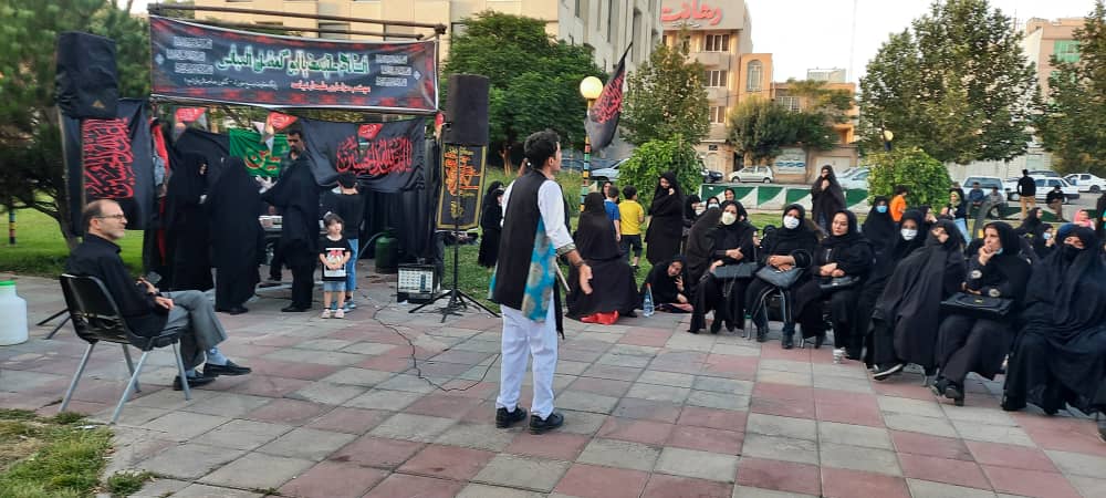 حمیدرضا محمدلو از هنرمندان مسجدی استان همزمان با ایام سوگواری شهادت سرور و سالار شهیدان حسین‌بن‌علی(ع) در حال اجرای ده نسخه نقالی برای دهه اول محرم در پارک کودک خیابان صفا زنجان است.