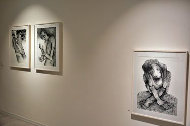 این هنرمند اظهار کرد: من تمام کارهای نمایشگاه جدیدم را در یک فضای دو متری با وجود درد و رنج بسیار انجام دادم. در تمام دنیا سولههای بزرگی در اختیار هنرمند قرار می دهند و به هنرمندان به عنوان گنجینه نگاه میکنند چون می دانند یک هنرمند می تواند یک کاغذ ۵۰۰ تومانی را با چند خط به یک اثر ۵ میلیون تومانی تبدیل کند ولی ما اینجا مانند قرن ۱۹ میلادی فکر میکنیم که هنرمندان باید گشنگی بکشند.