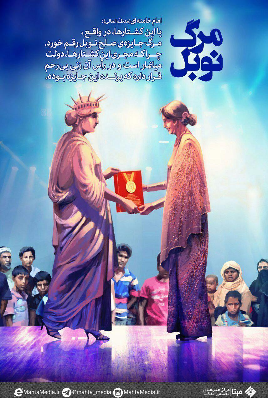 مرکز هنرهای تجسمی انقلاب وابسته به مرکز تخصصی فرهنگی کشور، جدیدترین طرحهای خود را با پرداختن به فاجعه نسل کشی مسلمانان در میانمار و با عنوانهای «میانِ مار» و «مرگ نوبل» منتشر کرد.