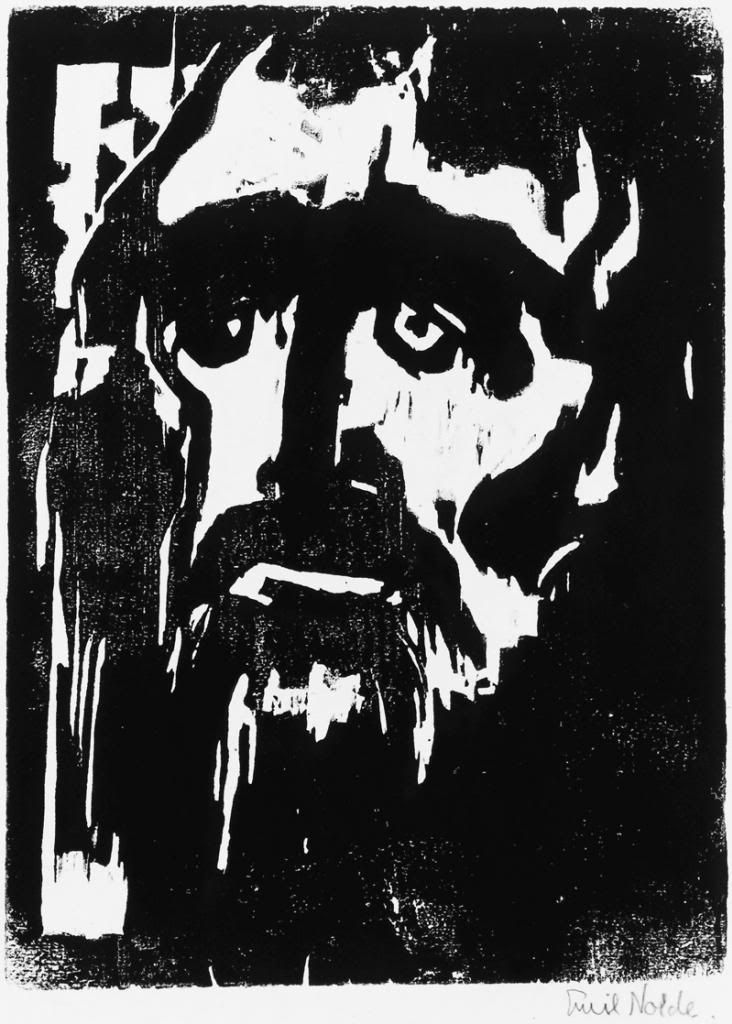اکسپرسیونیست پیشرو، «امیل نُلده»، زندگیش را وقف خلق آثاری پرروح و گاهی موضوعات مذهبی مانند این کرد. هدف او خلق اثری واقع گرایانه نبود (همان طور که خیلی از آثار سنتی مذهبی نیز کپی برداری از واقعیت نیست)، بلکه هدفش بیرون کشیدن احساسات قوی از خلال موضوعات آثارش بود. این اثر در اولین نگاه، یک باسمه ی چوبی زمخت به نظر می رسد. در حالی که این پیامبر مهربانی به نرمی سخن می گوید و همه به آن بی اعتنایند. سخنانی از یک پیامبر که سخنان پیامبر هستند؛ اما برروی میز سنگی سرد هیچ دادگاهی مورد قضاوت قرار نمی گیرند. پیام هایی راستین که می دانست در عصر خداشناسان همیشه مردود می دانند. هنرمندان جوان تر از نولده، عقاید مذهبی او را بر نمی تابند، ولی قدرت بیان احساسات در آثارش تار محکمی است که گسسته نمی شود.
