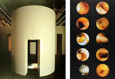جسم خارجی،1994، ویدئو اینستالیشن، با ساختار چوبی استوانه ای، ویدئو پروژکتور، دستگاه پخش ویدئو، آمپلی فایرو چهار بلندگو، 350.300.300 سانتی متر