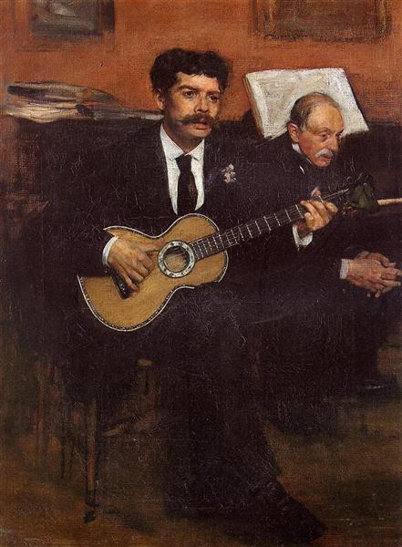 مانند مانه، دگا نیز خانوادهای ثروتمند داشت. پدر او رئیس یکی از بانکهای خانوادگی پاریس بود. او نیز مانند مانه گاهی اوقات به خیابان گردی میپرداخت، اگرچه آن قدر خانه نشین بود که نمیتوان او را یک خیابان گرد صرف دانست. در ابتدا آرزو داشت نقاشی تاریخی شود. دگا که اگنر را ستایش میکرد، نزدیکی از پیروان اگنر به تحصیل پرداخت و در کارهای اولیهاش به طراحی و برجستهسازی اصرار داشت. در سال ۱۸۶۵، دگا وارد محفل مانه و بودلر در کافه گوربو شد و به بازنمایی پاریس مدرن روی آورد.