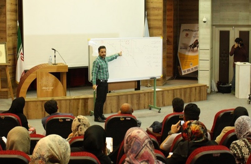 در ادامه این برنامه که به همت کانون رضوی حوزه هنری فارس برگزار شد، مهدوی به سخنرانی پیرامون ترکیب بندی و قاب بندی در طراحی سنتی و هنر تذهیب پرداخت.